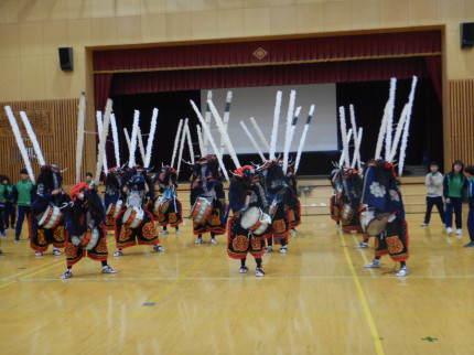 6年生は,学習発表会で発表する獅子躍の装束を着て,獅子頭をかぶり,太鼓を身に付けて練習がスタートしました。子供たちは,初めて装束などを身に付けたことで,気持ちが引き締まって練習にも熱が入っていました。本番が楽しみです。