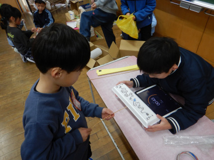 生活科で作ったおもちゃを使って「おもちゃまつり」を開きました。1年生を招待して,楽しんでもらいました。3時間目に行ったのですが,好評だったのと,自分たち2年生も遊べるように昼休みも行いました。1年生もたくさん遊びに来てくれて,とても満足そうでした。お兄さんお姉さんとして成長を感じる時間となりました。