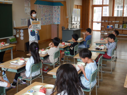子供たちに分かりやすく丁寧に話していただきました。おいしい給食を食べながらしっかり頭に入りました。センターの皆さん,ありがとうございました。