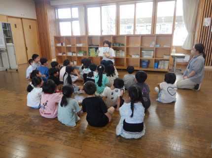 毎週火曜日・木曜日の朝活動は読書タイムです。今日は,1・2年生は読み聞かせボランティアの方による読み聞かせがありました。1・2年の子供たちは本の前に集まって興味津々に聞いていました。最後に感想を発表して楽しい時間を過ごしました。