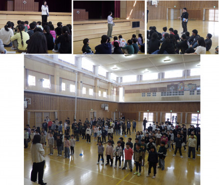統合式で披露する校歌の練習を行いました!本校の校歌は土井晩翠作詞、片山頴太郎作曲の昭和9年に制定されたものです。子供たちにはややなじみのないフレーズもあるのですが、重厚な歴史を感じさせる素敵な校歌です。自分たちの校歌に誇りを持ってもらおうと、まずは教職員3名が自身の小学校時代の校歌を披露しました。何年たっても覚えていることに子供たちは驚きの表情を見せていました!(歌ってくれた教職員!最高です!)その後、全校児童で校歌を歌いましたが、校歌を大切にしようという思いが高まった歌声になってきたと感じました。