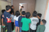 火災想定の避難訓練の実施に向けて、防火扉のくぐりぬけ訓練を実施しました。防災主任から気を付けることの説明があり、練習を行いました。いつでも、「おはしも」の約束を守って行動できるよう指導しています。