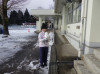 鬼首にも雪の便りが届きました。子供たちは元気に校庭に出て、雪の中で遊んでいます。小さな雪だるまを作って見せてくれました。手の部分に使った光るものは、つららです!