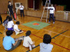 図書の先生がエッグドロップの企画を考えてくださいました。生卵をいろいろなもので保護し、上から落としても割れないようにするゲームです。4チームに分かれて対戦しました。さて、生卵は割れたのでしょうか?