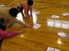 上学年と下学年がペアになり,カルタを交互に取っていきます。カルタは,A4サイズなので,子どもたちは見やすく,取りやすい大きさになっています。