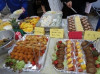 毎年,3月に卒業と進級をお祝いしながら全員で楽しく食事をします。メニューは,ちらしおにぎり,わかめおにぎり,フライポテト,揚げ餃子,ソーセージ,春巻き,玉子スープ,フルーツ,ケーキ等たくさんのメニューから主食,主菜,副菜,汁物など栄養のバランスを考えて適量を取って食べることが約束です。子どもなりに栄養を考えて,楽しく食事をすることができました。