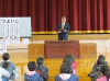『つよい子』とは,「辛くても負けない子」「よく学ぶ子」「いつも元気な子」「心優ししい子」であることを伝え,頭の文字をを取ると『つよいこ』になることを話しました。