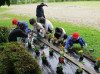 さて,花壇も衣替え,夏花壇に変身です。全校でサルビアやマリーゴールドの苗を朝の時間に植えました。毎年恒例の活動なので,上学年は手慣れたものです。1年生も6年生に手伝ってもらいながら一生懸命植えることができました。