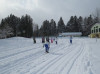 子どもたちは校庭でもスキーを楽しんでいます。