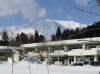 今日の鬼首は朝から晴天です。校舎のバックに雪化粧した禿岳が,鮮やかに見えていました。このように天気の良い日は,めったにありません。