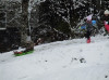 歓声をあげながら「そり遊び」や「雪合戦」を楽しんでいました。