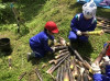 1・2年生が生活科の学習で「竹の子掘り」を行いました。