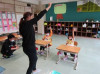ALTのバニザ先生の来校に合わせて,1・2年生は創意の時間に英語活動に取り組んでいます。年間10時間程度ですが,1・2年生の英語活動のねらいは,楽しみながら英語に慣れ親しむことです。子どもたちは,バニザ先生の動作に合わせながら,英語で自分の思いを表現することを楽しんでいました。