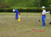 スナッグゴルフでは,通常のショットをランチャーという道具を使って行い,パッティングの際には,ローラーという道具に変えて行います。中央のスナッグフラッグに付けるとホールアウトとなります。子供たちも真剣にねらって,「おしい!」「すごい!」と声を掛け合いながら取り組みました!