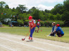 3種目は「スナッグゴルフリレー」です。ランチャーやローラーを使って,ボールを次の走者につなげる競技です。ボールの転がし方で勝負の行方が決まります。中には,ものすごいスピードでボールを運ぶ児童の様子も見られました!