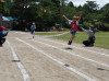 5種目目は,「たてわり対抗リレー」です。赤組,青組が校庭を半周ずつ走ります。途中で順位が入れ替わりながら,最後にゴールテープを切ったのは?