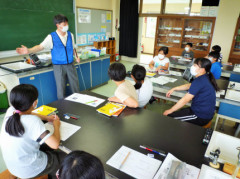 山田先生の「水をきれいにするために,どれくらい汚れているのかを調べる。どれくらい汚れているのかが分かれば,きれいにする方法を決めることができる。」という説得力のある説明に,子供たちはあっという間に引き込まれていきました。