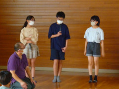 西中学校区内4小学校の6年生が古川西中学校に集まり,今月実施予定の修学旅行での自主研修コースについて発表し合いました。