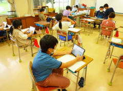 前回までは“地域の食材”としてカボチャを育て,自宅で調理にチャレンジしました。カボチャの硬さを知って驚いたり,加熱することによってとても柔らかくなることを学んだりし,タブレットを使って学習成果をまとめました。