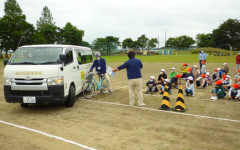 実際の自動車を使った演示はリアルさが増し,子供たちはとても真剣に見て学んでいました。