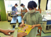 5年生が図工の学習で,1枚の板材からパズルを作っています。