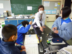 古川西中学校教員に来校してもらい,理科の学習指導を行っていただいています。