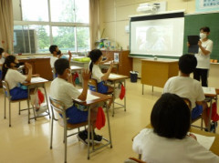 6年生は運動会で発表したソーラン節の舞いを披露しました。力強く,息を合わせた表現に,支援学校の子供たちからたくさんの拍手をもらいました。