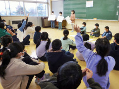 文章に隠されたヒントを見付けようと,2~6年生はいつも通り真剣に聞き入って答えていました。