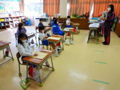 1年生は午前中に『花丸40個達成パーティ―』をしたので,この5時間目は冬休みのことを確認していました。