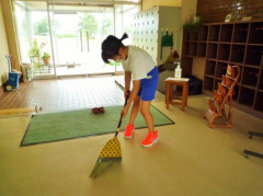 来客用のスリッパを横にずらして,マットの上の埃を繰り返し丁寧に掃き,最後にスリッパを戻し,しっかり揃えていました。