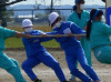 中学生の迫力ある応援合戦を見た後,中学生と一緒に綱引きと○×ゲームをして楽しみました。綱引きでは,気合いを入れる中学生の雄叫びに,志田小の子供たちも応えて叫んでいました。