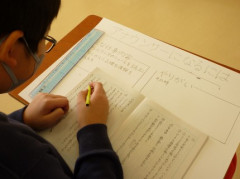 効果的な文字のレイアウトなども工夫する一方で,大きなボードに水平に線を引くことには苦労していました。