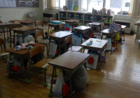 今日は,朝の業前活動中に地震が来たことを想定して訓練をしました。ほとんどの児童が教室で朝読書を行っていましたが,担任の声掛けがなくても,騒ぐことなくすぐに近くの机の下にもぐり,身を守っていました。