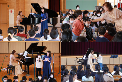 コンサートでは,ピアノ演奏の他に,本校の音楽主任の小野先生との二重唱や,子供たちへの歌唱指導もありました。