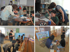 今日は,健康推進課から歯科衛生士の皆様にお出でいただき,正しいブラッシングの仕方や,正しい生活習慣を身に付けるために大切なことを教えていただきました。子供たちは,実際に正しいブラッシングの仕方で歯磨きをしたり,食品に含まれている砂糖や油の量を視覚的に確認したりすることで,自分の生活を見直すよい機会となりました。毎日の食生活の中で野菜が足りているかどうかを調べる測定器も紹介してもらいました。一人一人測定してもらうことで,より野菜を食べることの重要性に気付くことができました。保護者の皆様,子供たちは野菜の重要性を学びましたので,食卓に野菜をたくさん出すチャンスです!!