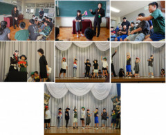今日は、日本奇術協会の皆様が来校しました。「夢と希望の創造空間 Magic of MAGIC」の公演名の下、前半は教室で3種類のマジックを実際に教えていただきました。そして、後半の部です。鳩が出てくるマジックやおしゃべりマジック、和妻やイリュージョンを披露していただき、子供たちはすぐ目の前で繰り出されるマジックに目を輝かせていました。そして、なんと!子供たちは緊張しながらも全員で3つのマジックをステージで発表しました!保護者の皆様や地域の皆様も、子供たちの輝く姿に目を細めていました!また、心に残る思い出が一つできました!