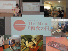 今日は東学校給食センターから栄養士さんが訪問され、「和食と地産地消」について教えていただきました。11月24日は「いい日本食の日」で和食の日ということや、大崎市で採れる野菜などを教えていただきました。鰹節を目の前で削ったり、そのにおいを嗅いだりできるなど、とてもよい時間を過ごすことができました!