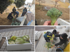 6年生が白菜やブロッコリー、大根、人参、春菊の収穫をしていました。ブロッコリーは茎までしっかりと太くてとてもおいしそうです。また、大根や人参はバケツなどで育てていたものです。人参などは葉っぱが付いていますので、店頭に並ぶ人参とはまた違った外見です。とても貴重な体験の一つになりました!ご協力いただいた業務員さんに感謝!