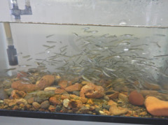 12月上旬にいただいてきた卵が正月にふ化し、順調に育っています!子供たちは水槽掃除や餌やりをしたり、成長の様子を記録したりしながら大切にお世話をしています。なんとその数は1000匹!2月27日に学校裏の鳴瀬川に放流する予定です!