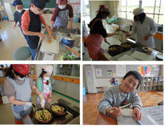 今日は,5・6年生で調理実習を行いました。料理名は,5年生は,名付けて「ほうれんそうとゆでいもをゆでたよ」,6年生は「ハム野菜炒め~下伊場野スペシャル・6年生の愛情を添えて」ということです。校長も教頭も,そして4年生児童もおいしくいただきました!みんなすてきな笑顔でした!!