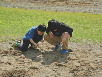 学芸会の練習で忙しい子供たちです。今日の業間休みに久しぶりに砂場にいる子供たちの姿を見ました。スコップ片手に、膝をついて、せっせと穴掘り・・・。すると、「お~!水出てきた~!」との声。砂場で穴掘り・・・、私もよくやりました。穴を深く掘っては水が湧いて出て喜び、トンネルを作っては開通させて中で友達と手をつないで喜び・・・。懐かしいです。落とし穴を作ったものの、友達を引っかけるつもりが自分で落ちてしまったりなどは、日常茶飯事でした。汚れたズボンとつま先まで真っ黒になった靴下を洗うお家の方には申し訳ないのですが、五感を使って遊ぶ体験は絶対に必要です。大人になると風を感じたり、雲の動きで感動したりが少なくなります。自然を体感するのは今です。外遊び・・・推奨しています。洗濯・・・どうぞよろしくお願いいたします・・・。