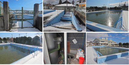 1/13 校庭西側にプールがあります。残念ながら老朽化が進み、今年度は使用しませんでした。25m、5コースあるプールです。今のプール指導では使用しなくなった腰洗槽や洗眼の蛇口もあります。シャワーは現役バリバリで、今年もカヌー教室後に子供たちが使いました。泳ぎの得意な人も苦手な人もいたとは思いますが、数多くの卒業生が様々な思い出を刻んだプールです。よって、ここに下伊場野小遺産に認定します!