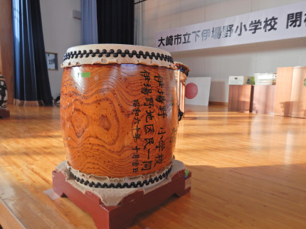 2/3 本校の自慢の一つは太鼓です。代々受け継がれてきた太鼓の演奏は迫力満点で、演じる児童の真剣なまなざしは心打たれるものがあります。学校にある太鼓は当時の地域の皆様の温かい支援により寄贈されたものであるとのことです。今、子供たちは閉校式に向けて太鼓の練習に一生懸命に励んでいます!仲間と気持ちを合わせ、自分の思いを込めて、また、これまでこの太鼓を叩いてきた卒業生にも思いを寄せて、心をこめて太鼓を叩く8人の子供たち・・・。