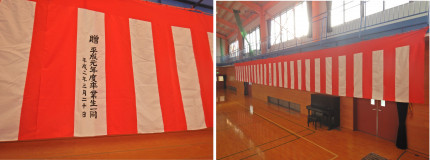 2/4 閉校式、卒業式に向けて紅白幕を体育館に設置しました。今年度は入学式がありませんでしたので、1年ぶりの登場です。幕には「平成元年度卒業生一同」とありますので、38年間にわたり数多くの新入生や卒業生の晴れの日を見届けてきた紅白幕です。新入生や卒業生だけではなく保護者、ご来賓の皆様のたくさんの笑顔を見守ってくれた紅白幕・・・。よって、ここに下伊場野小遺産に認定します!