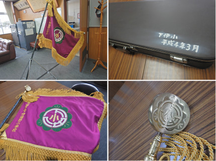 2/17 昨日(2/14)に行われた閉校式において、児童代表と校長から教育長へ、教育長から市長へ校旗を返納いたしました。ずっしりとした校旗の重みからは、この学び舎を巣立ったたくさんの卒業生とこれまで勤めてこられた教職員の皆様の様々な思いを強く感じました。校章は当時勤めていた教職員がデザインしたものです。入学式や卒業式において式を彩ってきた校旗です。たくさんの方々の熱き思いが詰まった校旗です。よって、ここに下伊場野小遺産に認定します!